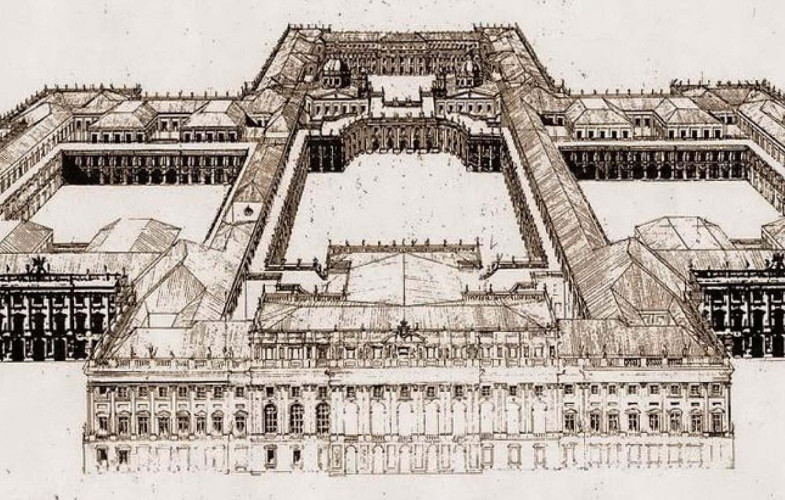Proyecto de F. Juvarra para el nuevo Palacio Real de Madrid. Fuente: Investigart