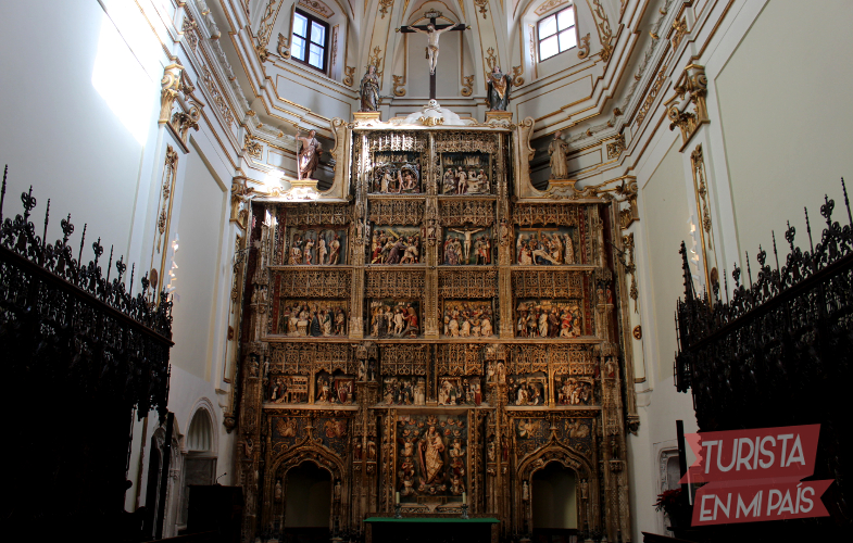 La iglesia del Monasterio de Santa María de El Paular es uno de los grandes espacios del recinto. Tras cruzar la reja, coronada con las armas de Castilla, y contemplar los sillares de madera, se llega hasta el altar mayor, presidido por una de las principales joyas artísticas del cenobio: su imponente retablo. Ejecutado en alabastro, fue escupido a finales del siglo XV y está dedicado a la titular, Santa María de El Paular, situada en el primer banco rodeada de ángeles. Se desconoce su autoría, pero seguramente procede de la Escuela Burgalesa, del entorno de Simón de Colonia, Gil de Siloé o Felipe Bigarny, este último precisamente autor del retablo de la Capilla Real de Granada.