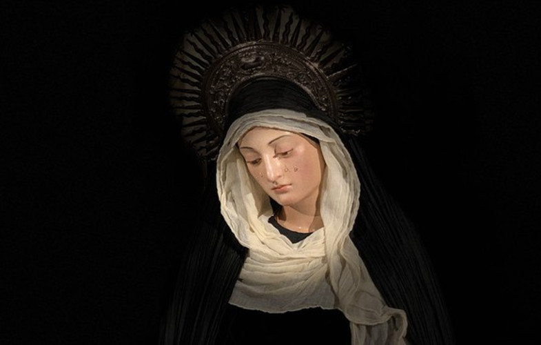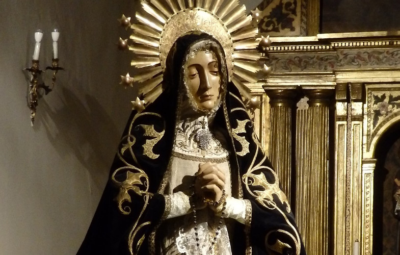 La Semana Santa es una de las tradiciones populares más importantes de España. La riqueza y la variedad cultural con la que cuenta el país se refleja también en las diferentes celebraciones que se desarrollan por toda su geografía durante los días en los que los cristianos recuerdan la Pasión, Muerte y Resurrección de Jesucristo. Las procesiones son el elemento principal de la Semana Santa española. Estos cortejos no se entenderían sin las imágenes que salen a las calles para hacer manifestación pública de fe. De entre las diversas advocaciones que podemos encontrar de Cristo y la Virgen María, en lo que respecta a esta última cabe destacar la de La Soledad, que evoca la desolación de la madre que ha perdido al hijo, muerto en la cruz.