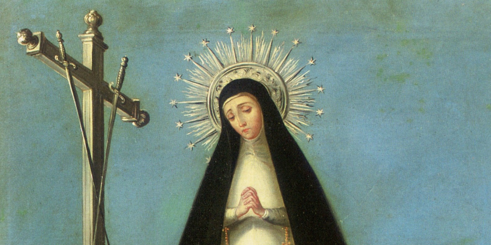 Aunque la advocación y representación escultórica de Nuestra Señora de la Soledad tiene un origen español, desde un punto de vista teórico sus raíces se encuentran en el último de los Siete Dolores de la Virgen. De acuerdo con la tradición, a comienzos del siglo XIV la Virgen se manifestó a través de Santa Brígida y reveló al mundo sus siete dolores a través de siete espadas clavadas en su corazón, haciendo alusión a siete pasajes duros de su vida al lado de su hijo, Jesucristo. Por su parte, la Orden de los Servitas fue la encargada de extender la meditación y el recogimiento en torno a los Siete Dolores de la Madre de Dios, cuya festividad del 15 de septiembre fue oficialmente impuesta por el Papa Pío VII en 1815, sin olvidar el recuerdo del Viernes de Dolores previo al Domingo de Ramos.