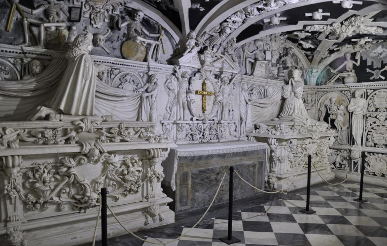 Del mismo modo, nadie que visite el Santuario de la Victoria puede irse sin visitar el Panteón de los Condes de Buenavista. Gozaron del privilegio de ser enterrados en la iglesia ya que, gracias a su patrocinio e intervención, el templo pudo desarrollar la importante reforma a la que se le sometió en el siglo XVIII, siendo lo que hoy en día contemplamos y disfrutamos. La cripta se puede considerar otra obra cumbre del barroco español, toda una oda al arte fúnebre en el que el sentimiento lúgubre se aprecia nada más acceder al espacio. Sus sepulcros están bellamente decorados, pero lo más impactante son las calaveras de yeso que destacan sobre el fondo negro del lugar, en el que todos los detalles están cuidados hasta el extremo.