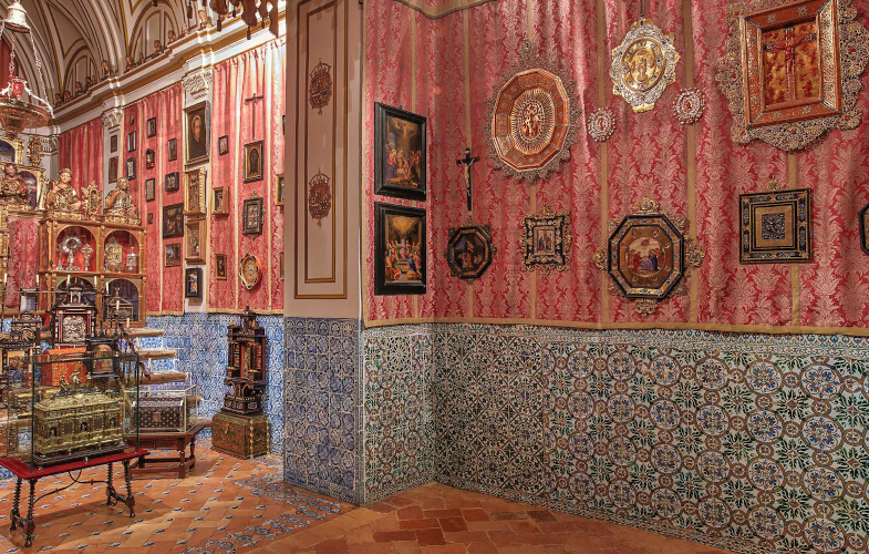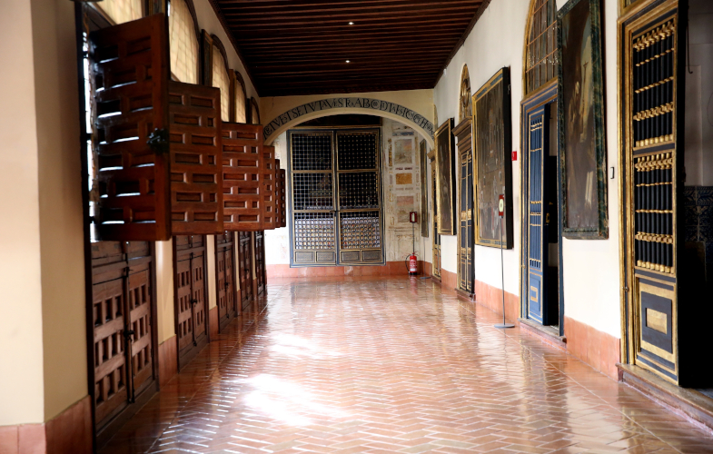 - Claustro alto: el patio o claustro de las Descalzas Reales no solo permite organizar la vida de las monjas que residen en el monasterio, sino que también es un rincón de espiritualidad dentro del recinto, especialmente durante los oficios de Semana Santa, como ya hemos comentado anteriormente. En su parte alta se abrieron diferentes capillas en las que dar culto a diversas advocaciones religiosas. Una de las curiosidades es que el cuidado de cada uno de estos espacios está encomendado a una monja concreta de la comunidad; por ejemplo, a la abadesa le corresponde el mantenimiento de la capilla del Cristo Yacente. Asimismo, destaca también que en el claustro alto de las Descalzas Reales se expuso hasta finales del siglo XIX ‘La Anunciación’ de Fra Angelico, hoy en día en el Museo Nacional del Prado.