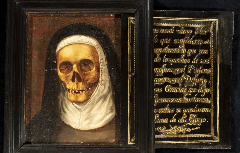 - El ‘Espejo de clarisas’: ningún visitante puede irse del Monasterio de las Descalzas Reales sin haberse asomado a uno de sus grandes secretos. Conocido como el ‘Espejo de clarisas’, se trata de una obra anónima del siglo XVII en el que se representa una calavera con tocado de clarisa. Sin embargo, para poder descubrirla hay que correr una tapadera en la que aparecen inscritos los siguientes versos: «Lo que en mí vienes a ver / te pido que consideres / y enmendaras lo que eres / mirando lo que has de ser:/ la hermosura y el Poder, / el donaire y el despejo, / con otras Gracias que dejo / tus Esperanzas burlaron, / por que todas se quedaron / a la luna de este Espejo«. Sin duda, una obra que invita a la reflexión.